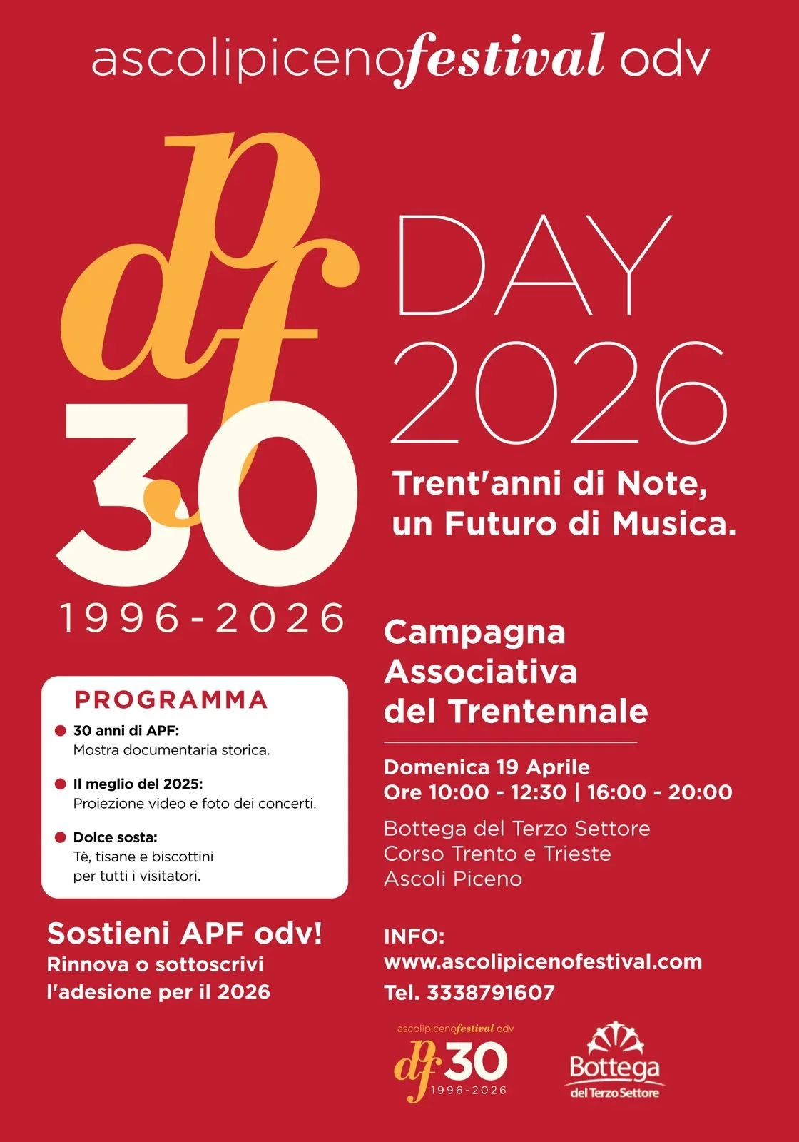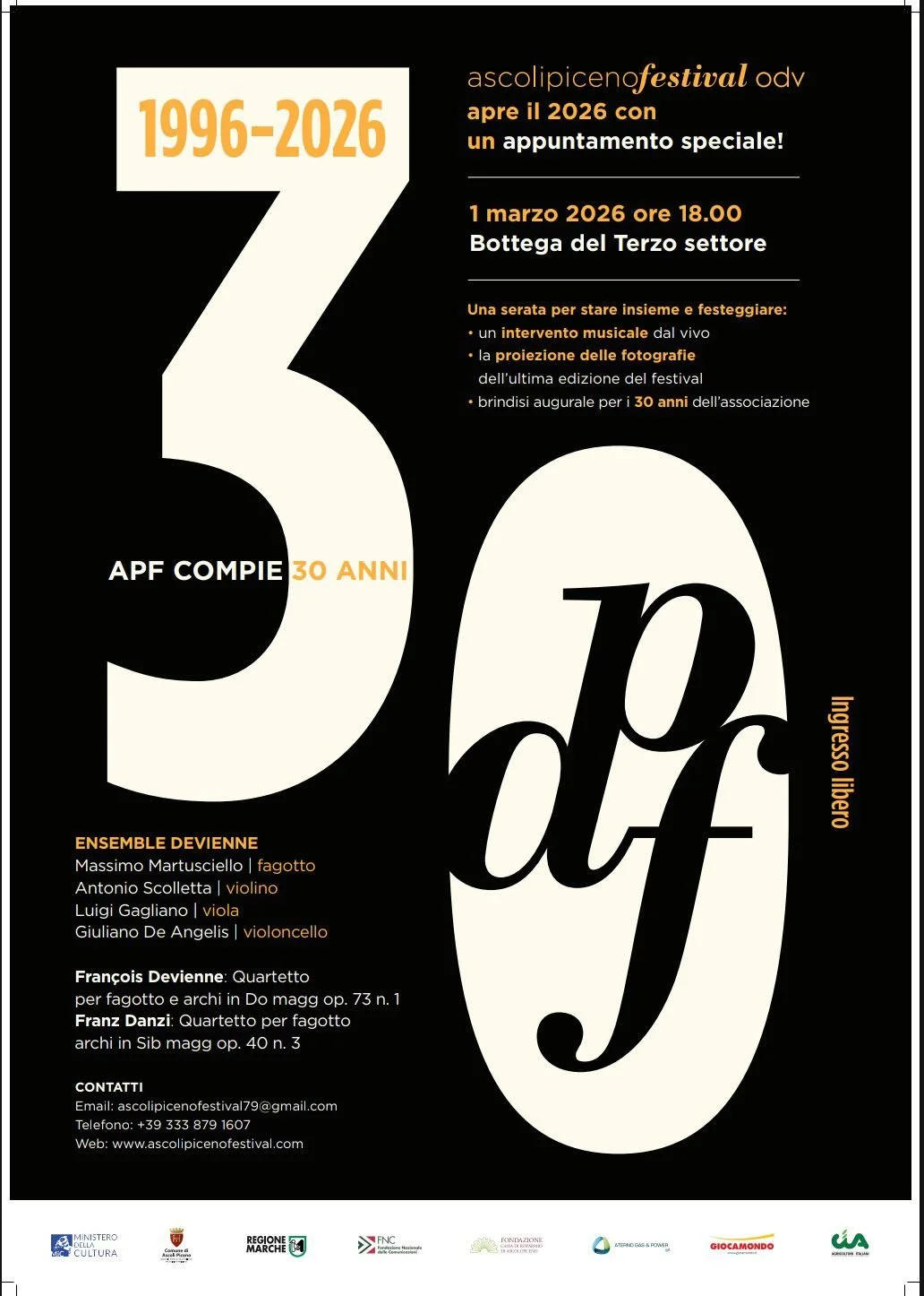AscoliPicenoFestival OdV inaugura il trentennale dell'associazione alle ore 18 alla Bottega del Terzo Settore.